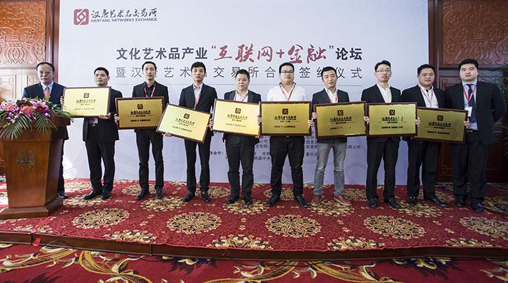 2015年10月29日,“文化藝術(shù)品產(chǎn)業(yè)‘互聯(lián)網(wǎng)+金融’論壇暨漢唐交易所授權(quán)與合作簽約儀式”在京隆重召開。文化部、中宣部、人民日報相關領導,各界代表、金融文化界精英、頂級行業(yè)專家、各大實力經(jīng)紀商等嘉賓齊聚北京民族文化宮,共論了“互聯(lián)網(wǎng)+”時代下文化藝術(shù)品產(chǎn)業(yè)現(xiàn)狀、未來和發(fā)展,見證了北京天首基金、北京浩正投資、人民日報《人文歷史》、韓國友利銀行、韓國美術(shù)協(xié)會、韓國郵票商協(xié)會等幾十家中韓機構(gòu)與漢唐藝術(shù)品交易所合作的簽約。